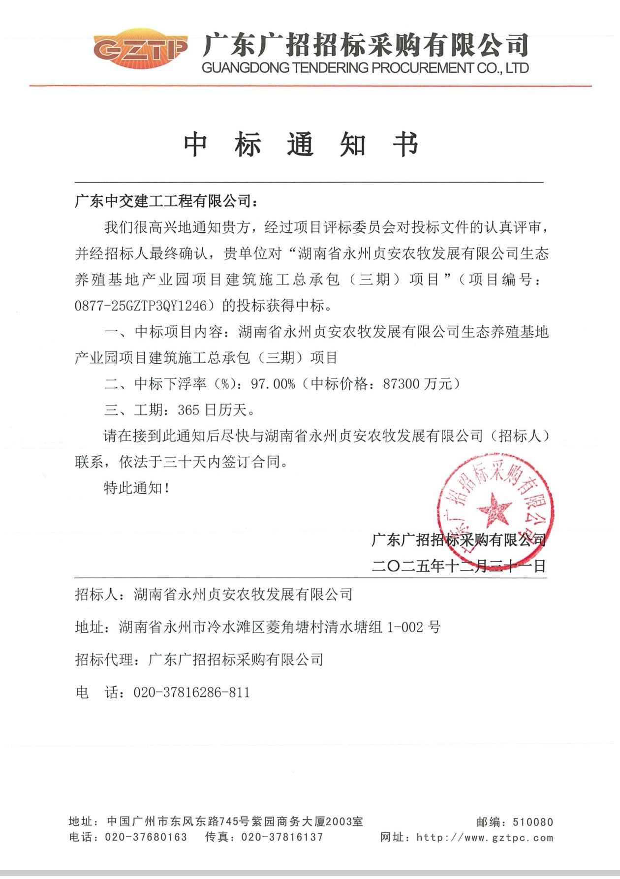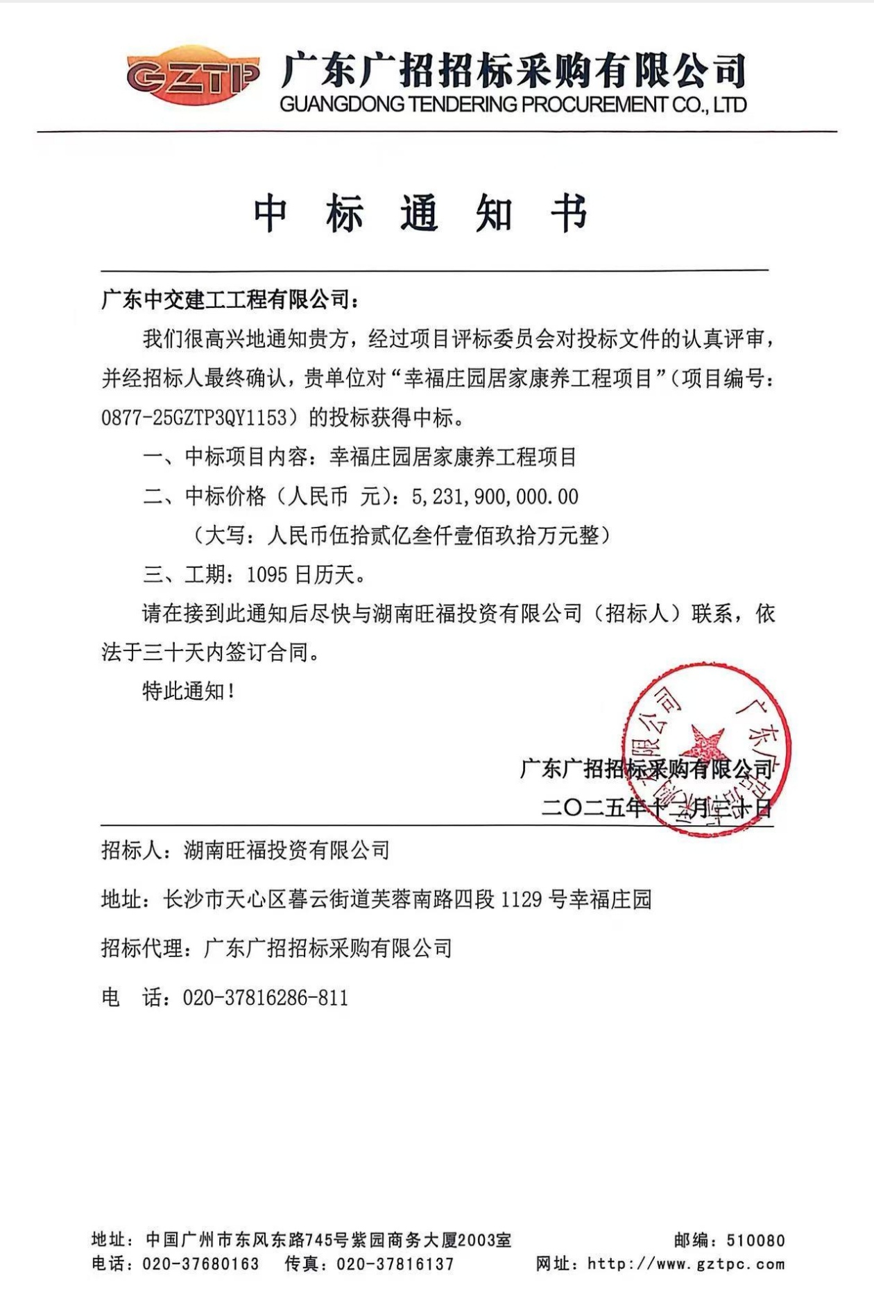 中交城投(深圳)控股集团有限公司中标喜报